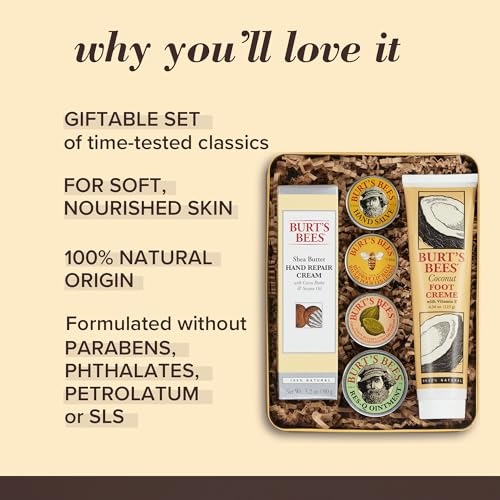 Burt's Bees Gifts Ideas - Classics Set, 6 Products in Giftable Tin – Cuticle Cream, Hand Salve, Lip Balm, Res-Q Ointment, Hand Repair and Foot Cream